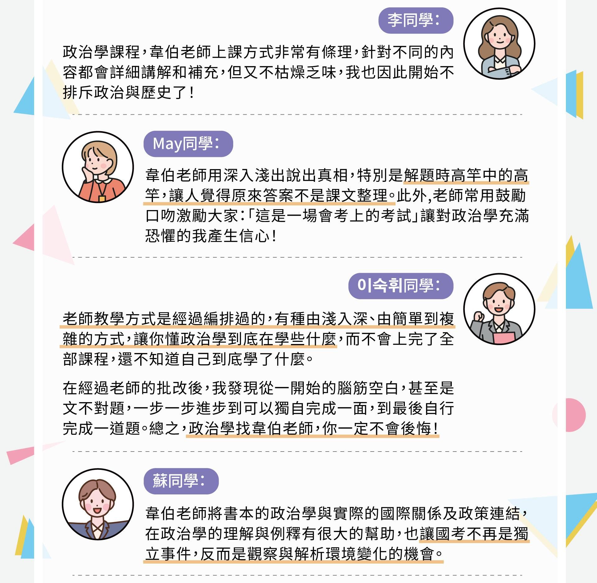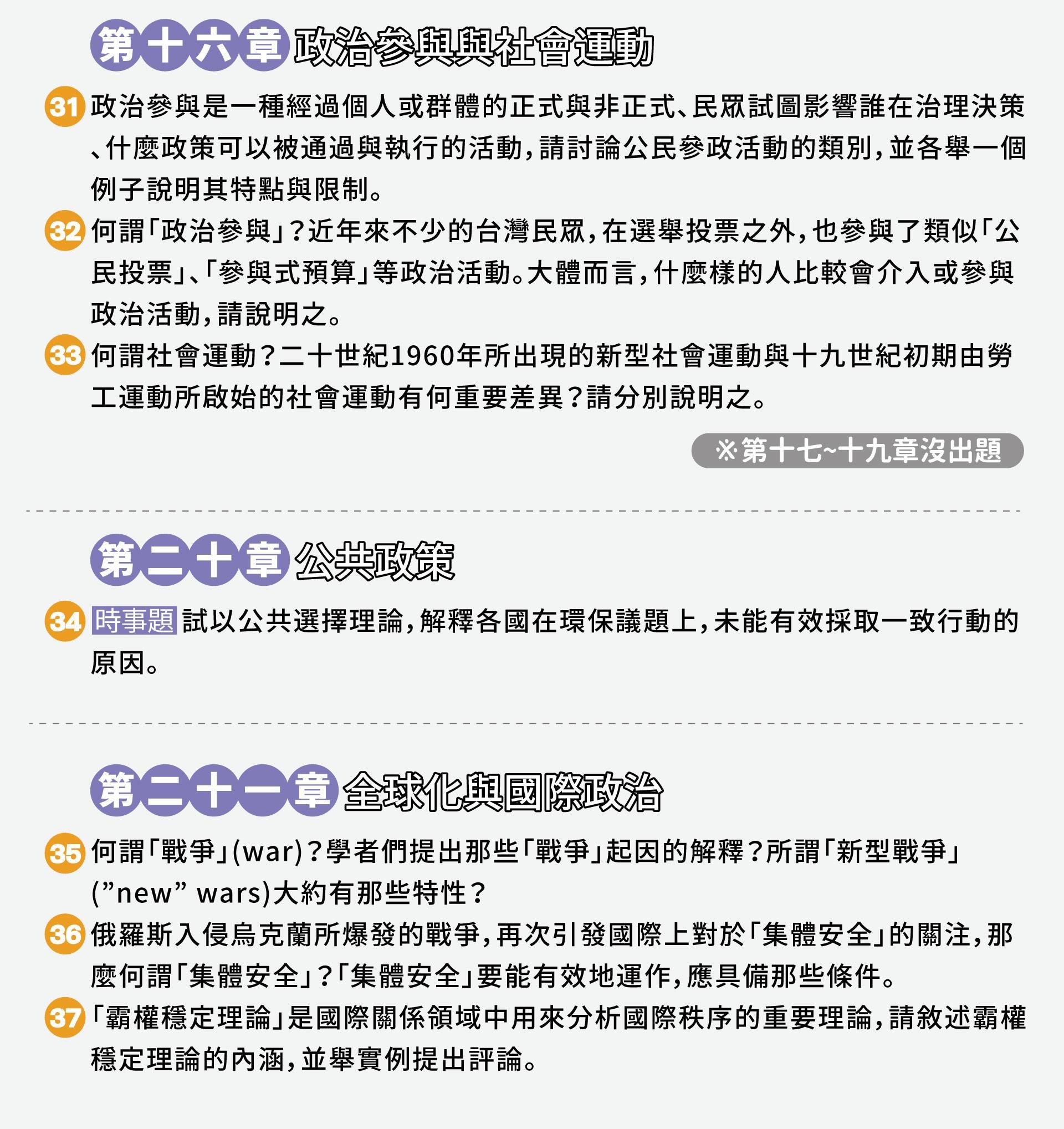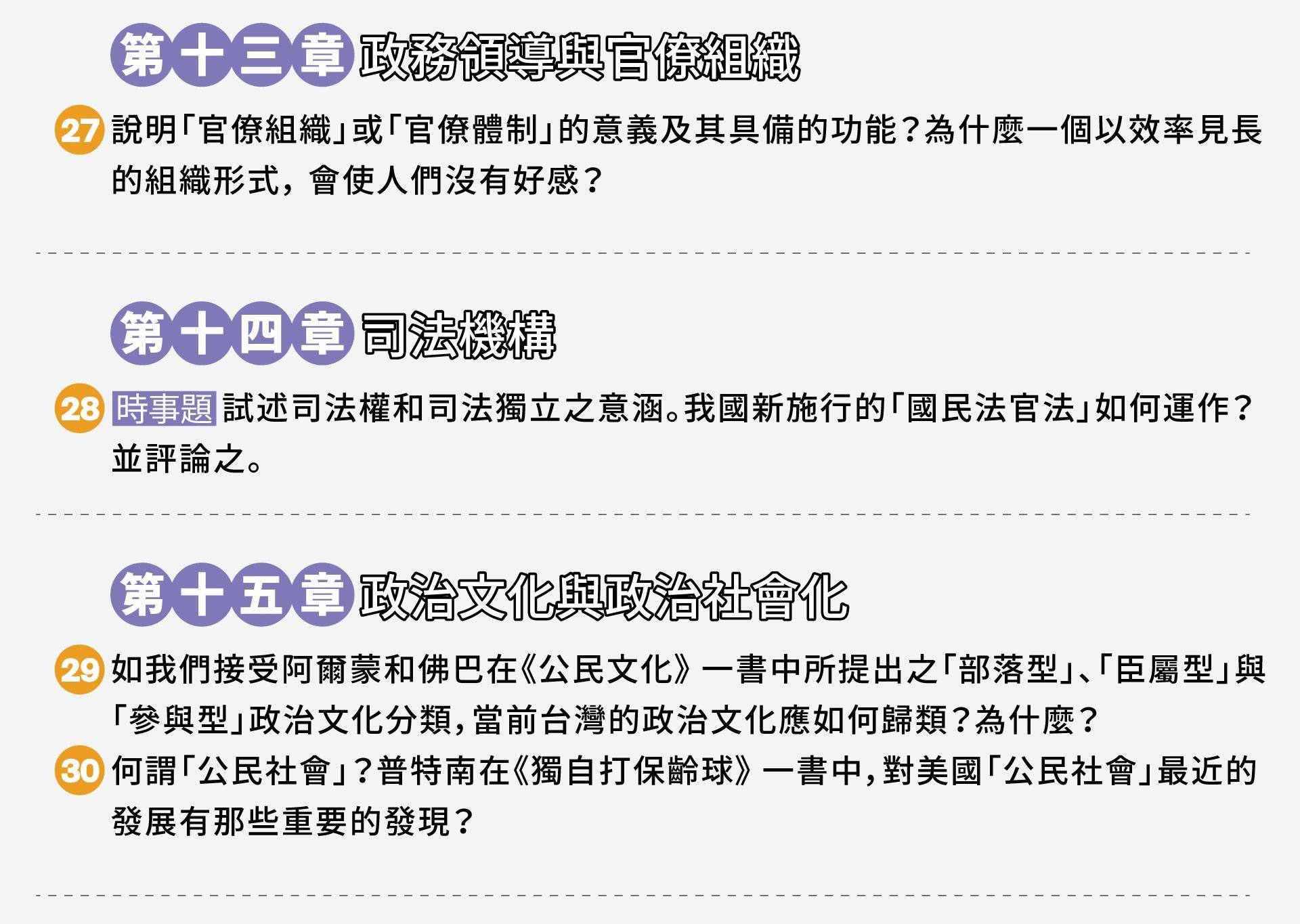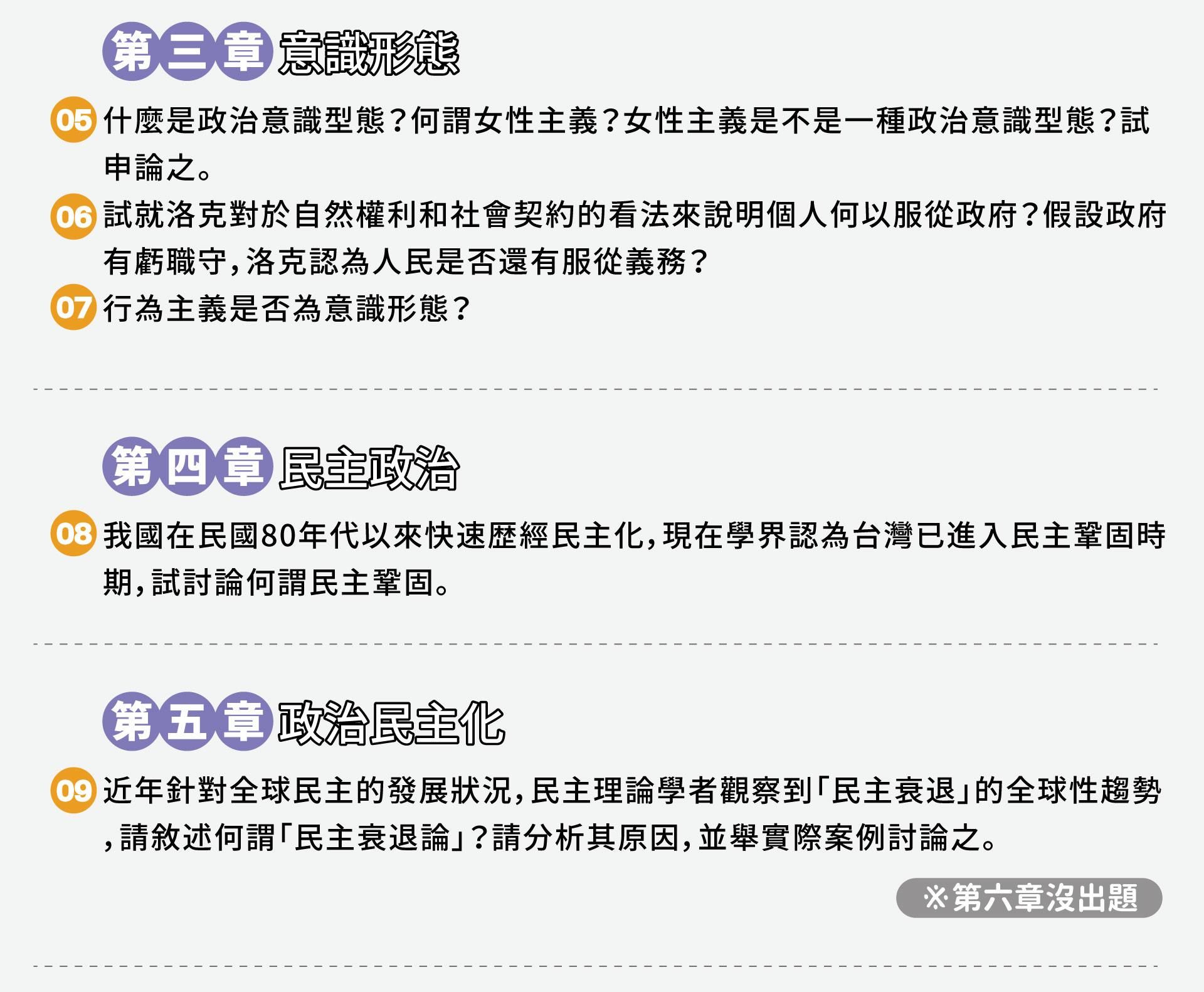 |適用對象| 1.上過老師正課的學生,但沒有機會給老師改到考卷的考生 2.高普考政治學的考生 3.調查局考試的同學(雖然人數少,但黏著度高)