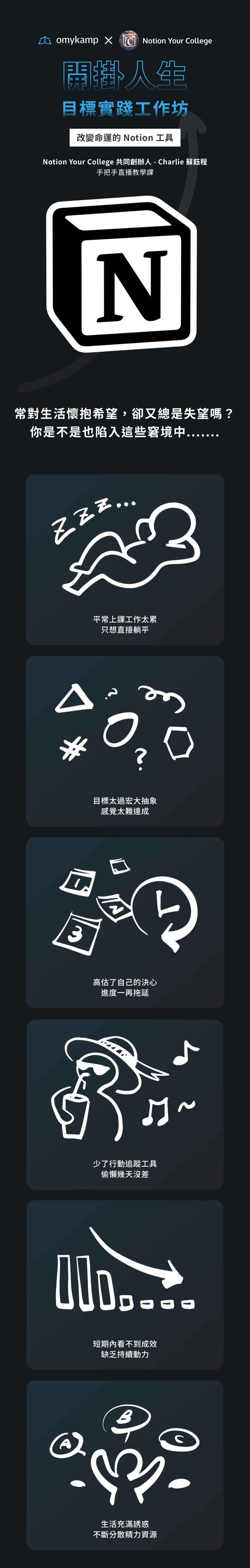 Charlie 蘇鈺程,是位「數位設計專家」,活用各種數位工具,像是 Notion、Heptabase、Whimsical、Butter … 等,並創造 10 多項數位產品與服務,像是由 Notion 所打造的「CIA 科系星球」線上營隊,協助超過 400 位學員,讓學習與管理更高效。