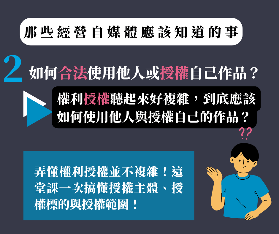 擁有大量「知識產權相關知識」演講經驗,淬鍊出最適合幫助實務經營自媒體的困境。